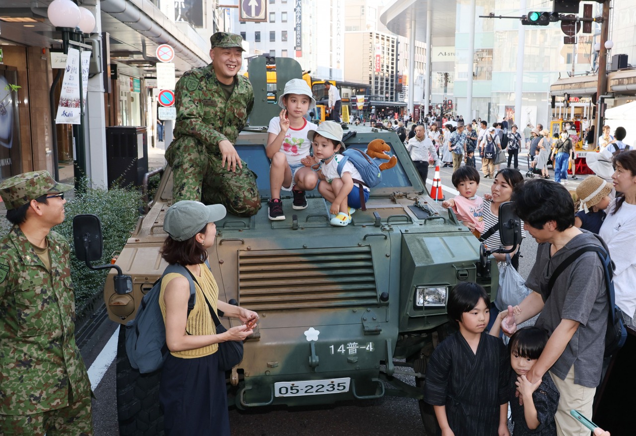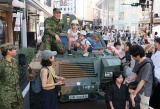 陸上自衛隊、消防、警察、国土交通省の災害派遣の場面を再現する車両を展示します。