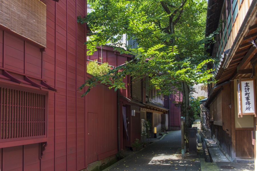 茶屋街とは、かつての豪商たちが芸妓あそびなどを行った歓楽街で、この町では今も芸妓さん(げいぎ、金沢では芸者ではなく芸妓と呼びます)たちが活躍しています。伝統的な街並みが今もそのまま残っており、タイムスリップしたような気持ちになれます。