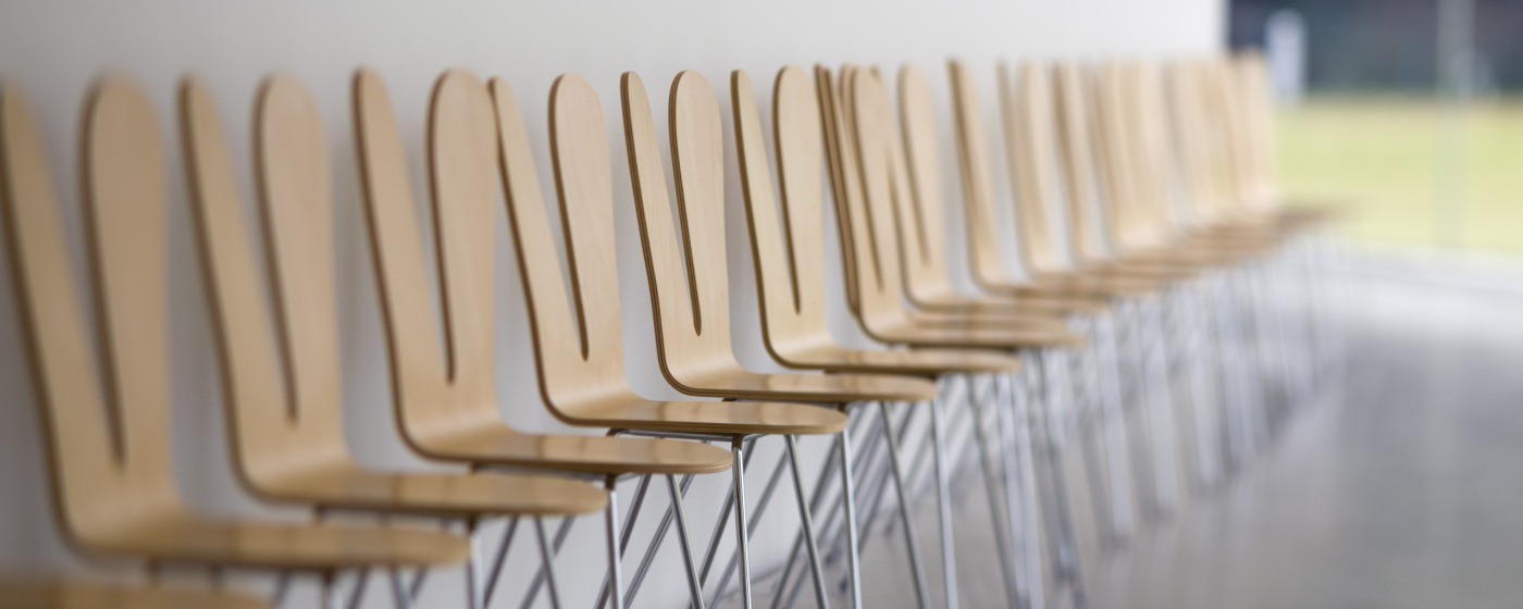 展示と同じくらい金沢21世紀美術館の名物となっているのが、ラビットチェアだ。館内の無料スペースに何脚も並べられていて、そのかわいいフォルムに写真を撮る人が続出。反対向きに座って、背もたれのウサギの耳を見せて撮るのが定番になっている。建築と同じSANAAによるデザインだ。ズラリと並んでいるのは木目デザインだが、ミュージアムショップ付近にはカラフルなものも数脚あるので探してみて。