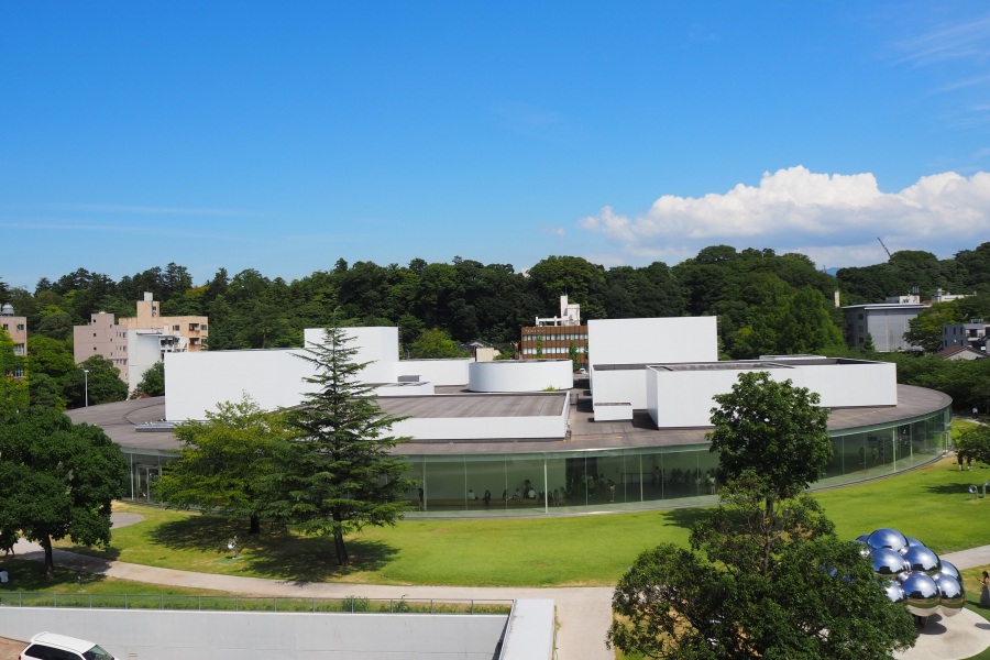 まちなかを歩いていて、公園のように開けた場所が現れる。それが金沢21世紀美術館だ。中央にある円形の建物が妹島和世+西沢立衛/SANAAの手がけた建造物。多くをガラスで覆われ、明るく開放感がある。世界各国から幅広い層の人に気に入ってもらえる仕掛けといえるだろう。まずは建築から見もの。ぐるっと1周まわって、全体を把握してみるのもいい。