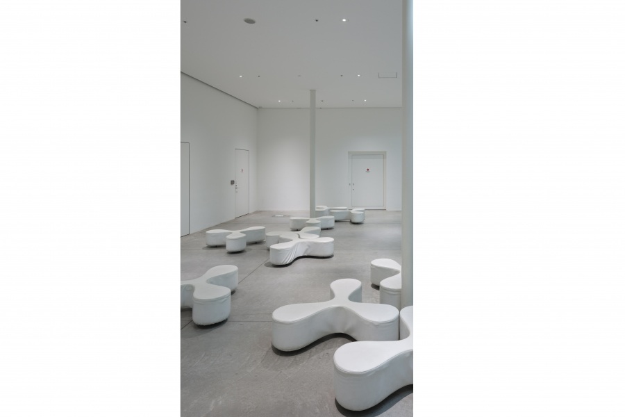おもに地下に置かれているのが、フラワーというソファ。3方向に伸びていて、どちらが正面でも裏側でもないカタチ。どこに座ってもいいし、合体させても構わない。美術館という場所に似合うフリーダムなソファだ。