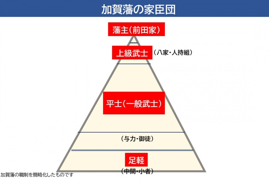 足軽は封建時代の日本の歩兵で、加賀藩の武士階級の中で最下層に位置づけられていました。