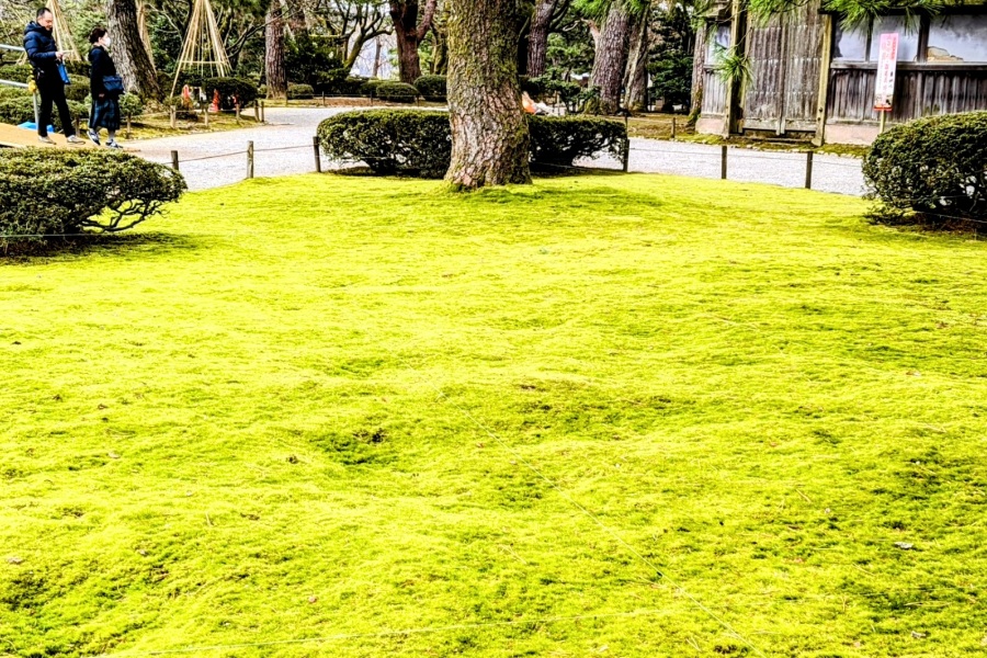 高い湿度は、庭園の美しさを支える「苔」を瑞々しく育てます。兼六園には数十種類の苔が生育しているといわれ、一年を通して深い緑の絨毯が広がります。雨上がりにしずくを湛えて輝く緑は、晴天の日よりも幻想的です。