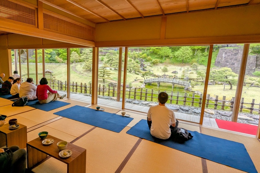 金沢城公園「玉泉庵」 :金沢城公園の玉泉院丸庭園にある茶室で、美しい庭園を眺めながら優雅なひとときを。