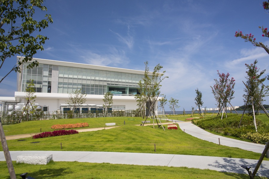 海に近い開けたロケーションでもあることから、春夏秋冬、朝昼夕、季節や時間によって雰囲気が全く変わります。例えば冬ならつららができ建物が綺麗に透けたり、夕暮れの時間には施設全体がオレンジ色に染まります。とても映えるので写真撮影スポットとしてもおすすめです。