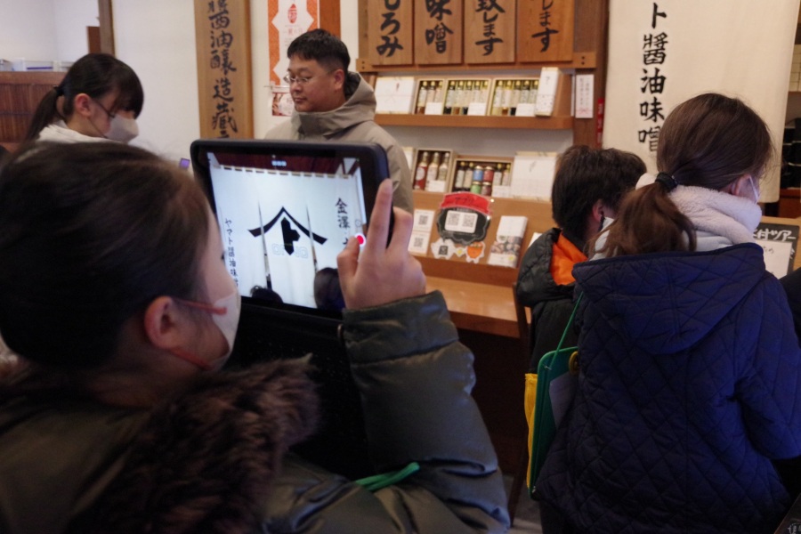 オリジナルのTシャツやここで作られたオリジナルの醤油や出汁、甘酒、味噌せんべいなどお買い物もできます。