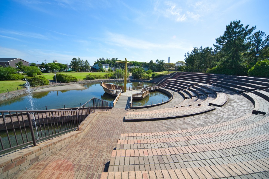 江戸時代から明治時代にかけて日本海海運で活躍した商船「北前船」を模したステージのほか船の形をした遊具や芝生や滑り台、ブランコなどの遊具やベンチも完備されているので、潮風と港の景色を楽しみながら大人も子どもも様々な楽しみ方ができます。