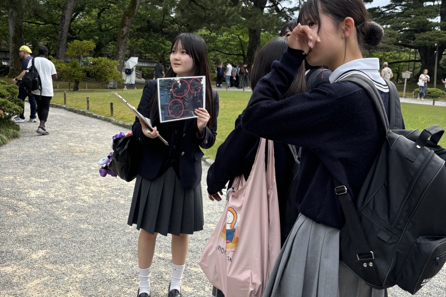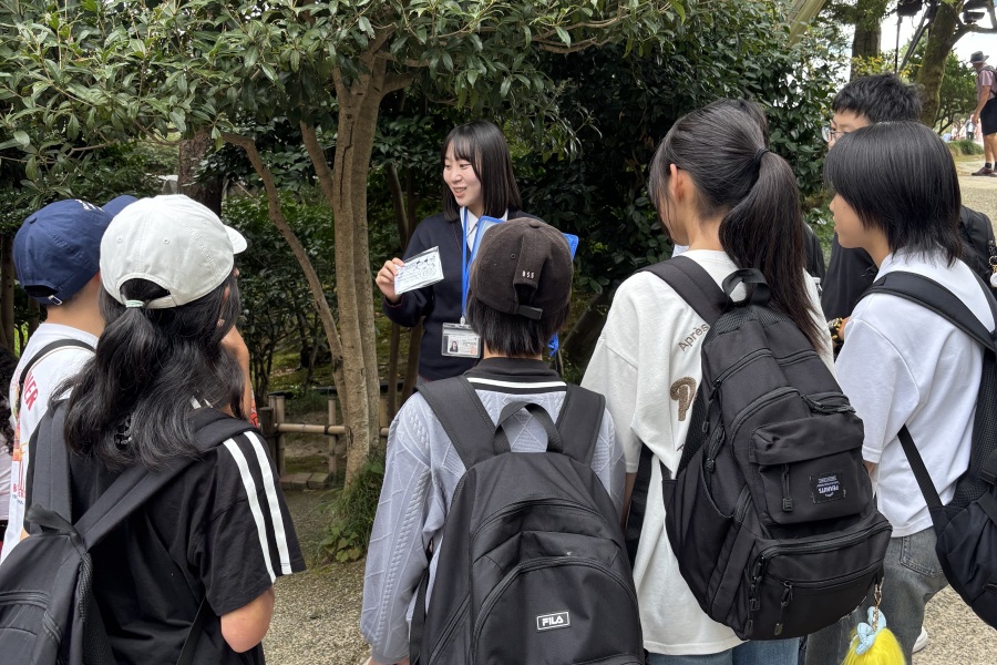 また、疲れが見える生徒には出身地で流行っているものの話を聞いたり、日本武尊(ヤマトタケル)像の前で「これ誰だ?」「石積の部分に隠れてる生き物は何?」といったクイズを出したりと、相手に合わせた「おもてなし」を実践しています 。