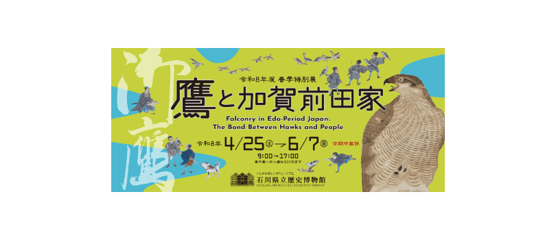 本展覧会では、古文書・鷹道具・絵画などの多彩な資料を読み解き、鷹狩、鷹の飼育・調教、鷹儀礼の実態から、鷹をめぐる前田家の歴史を明らかにしていきます。