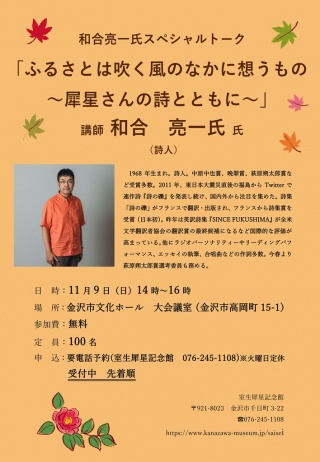 和合亮一氏スペシャルトーク 「ふるさとは吹く風のなかに想う… の詳細はこちら開館20周年記念展「映画と秋聲」