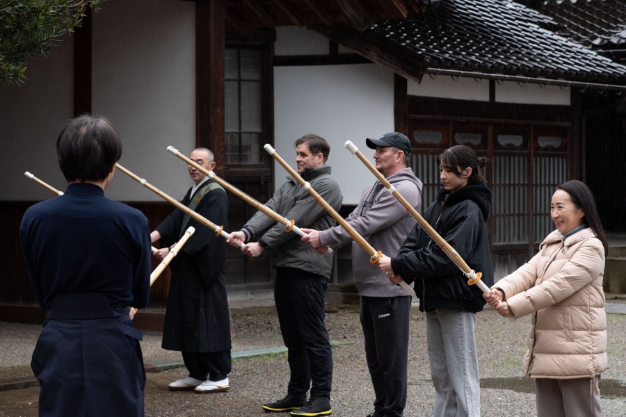 寺町寺院群の寺の境内で竹刀を振る剣道の稽古や聞香体験、朝粥で心身をすっきり目覚めさせます。さらに住職に読経でお焼香の仕方を伝授。日本文化を1時間でコンパクトに体験できるプランです。(2024年企画)