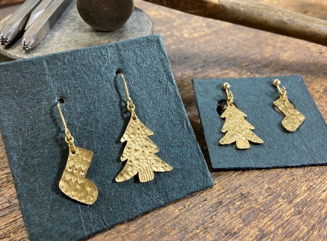 1.5㎜のアルファベットの刻印や小さいオリジナル刻印の体験。 (耳飾りの靴下は月に変更可)