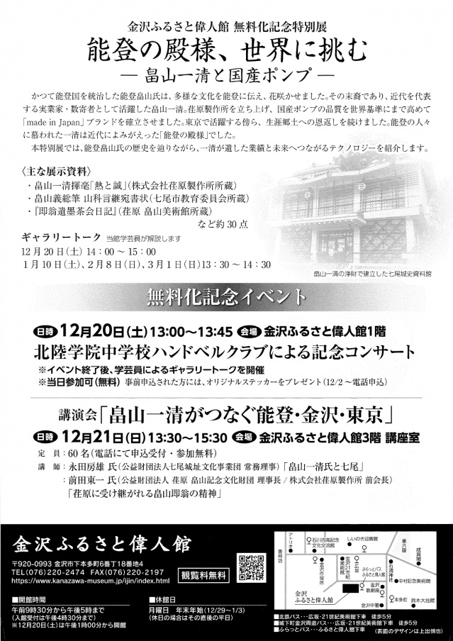 特別展「能登の殿様、世界に挑むー畠山一清と国産ポンプー」