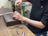 ③紙やすりで磨き、スタッフが金具をつけて完成です