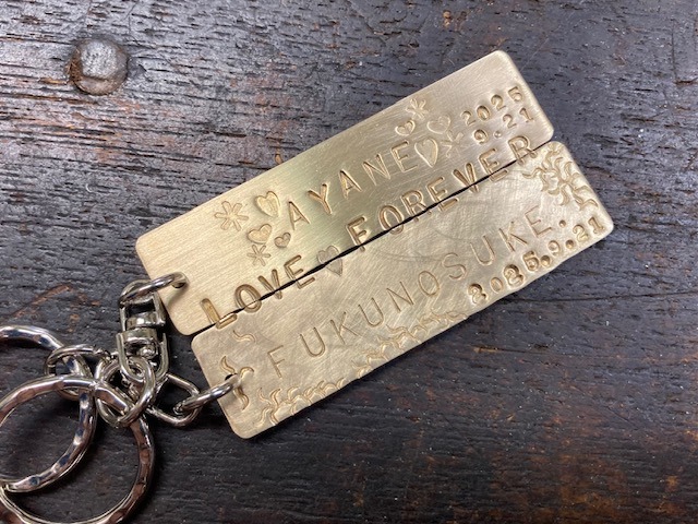 大人の休日、お二人で相談しながら楽しくお好きな言葉を刻印しませんか?自社制作のオリジナル刻印を使用します。