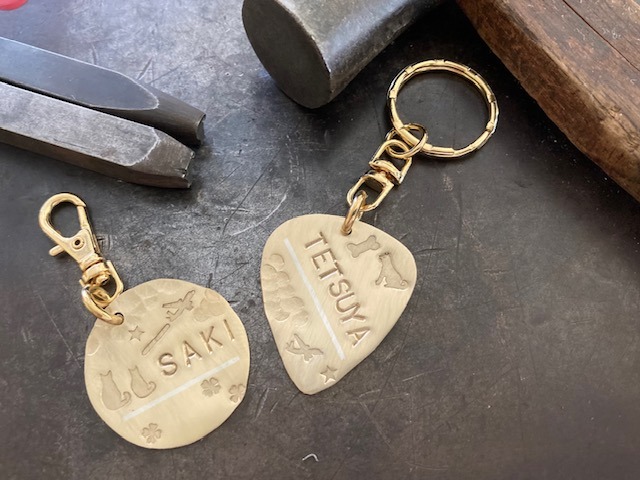 加賀象嵌(かがぞうがん)の技法で銀を象嵌後、オリジナル刻印で模様を付けます。ペットのお名前も入れられます。