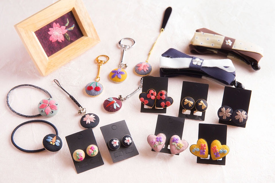 伝統工芸士による繊細な作業を間近に見て、加賀繡の技術を応用した小物を作ります。