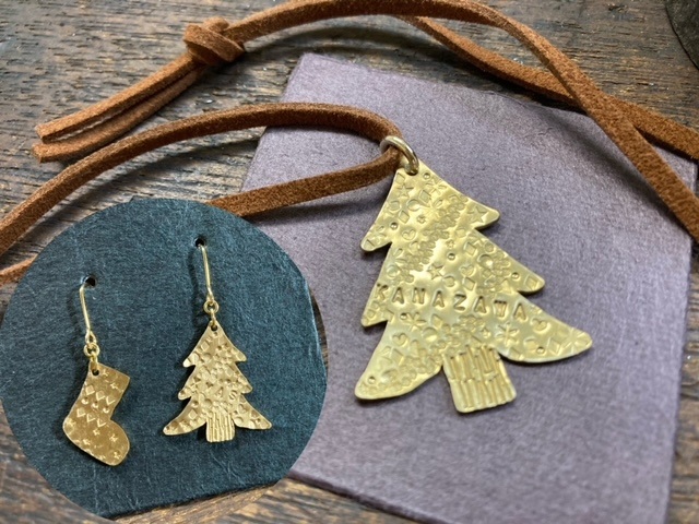 *体験の詳細*1.5㎜のアルファベットの刻印や小さいオリジナル刻印の体験。 (耳飾りの靴下は月に変更可)(星やハート、様々な図形など初心者向けの刻印を使います。模様も入りやすく初めての方はより楽しく制作出来ます) <工程> ①刻印練習 スタッフと一緒に刻印を打つ練習をします。 ②鉛筆で下書きをしてから模様を付けます。③形を整えて、裏面をヤスリ掛けし金具を付けます。(裏面は刻印の打った跡が残ります)耳飾りの場合、イアリングとピアス2種類(玉ブラタイプとフックタイプ)から1つ選んで頂きます。女性講師が一緒に制作し、金具を付けます。 ☆真鍮は色が変わります、簡単なお手入れの説明書をお渡しします。*体験人数 4名まで (★制作場所は2階です) *料金 ペンダントおひとり様3600円(税込) イアリングまたはピアス おひとり様3800円(税込)*体験時間60分*対象年齢 小学校中学年~80歳 ※お子様には保護者様の付き添いが必要です。*小学校低学年迄のお子様は刻印や金槌を一緒に持ち親子で制作して頂く場合もあります。(金槌を持つ力などは小学生には個人差がありますのでその都度対応が変わりますご了承下さい)*服装多少汚れても良い服装、動きやすい服装でお越しください。旅行中の方のために簡単なアームカバー、エプロン(女性用)をご準備しています。