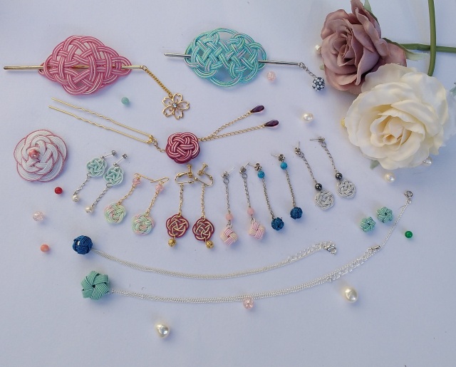 天然石をあしらった世界で一つ自分だけの水引アクセサリー作り体験<体験手順>1 基本のあわじ結びを練習します2 作品にあわせて様々(あわじ、平梅、玉、かけ結び等々)に結んでいきます3 金具を作り、取り付けをしますアクセサリーのパーツを多数ご用意しておりますのでオリジナル性の高い作品が作れます金具もピンの曲げ方からお教えしますのでお家に帰って自分でアクセサリーが作れます
